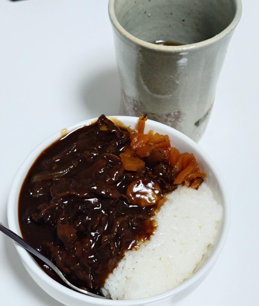 ハヤシライス、ミニトマトサラダ(ともにハーフサイズ)