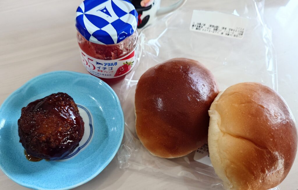 肉団子1個、バターロールパン2個(いちごジャム🍓)