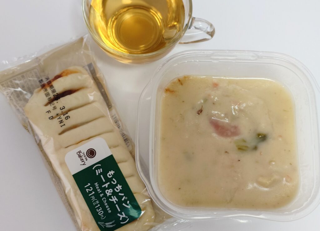シチュー、ファミリーマート もっちパン(ミート&チーズ)